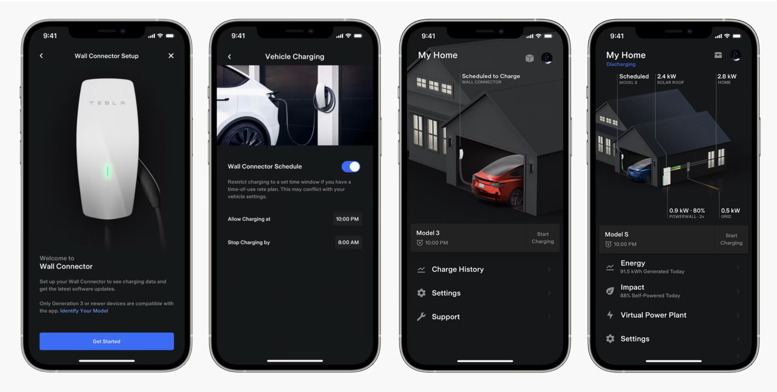 Dzięki wbudowanej łączności WiFi Wall Connector pozwala na zarządzanie parametrami ładowania z poziomu aplikacji mobilnej Tesla gdziekolwiek jesteś. Możesz również sprawdzić 12-miesięczną historię ładowań ze szczegółowymi informacjami na temat każdej sesji ładowania, czasu trwania i zużytej energii.